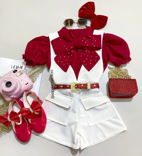 Composto por jardineira salopete e blusa strass lacinho. Envio em até 3 dias úteis após a confirmação. Compras feitas em boleto tem prazo de 24h para pagamento, caso o pagamento não seja efetuado nesse prazo, a compra será cancelada automaticamente. Para confirmação dentro desse prazo, mande o recibo do pagamento do boleto para WhatsApp da loja (77) 99940-7020.