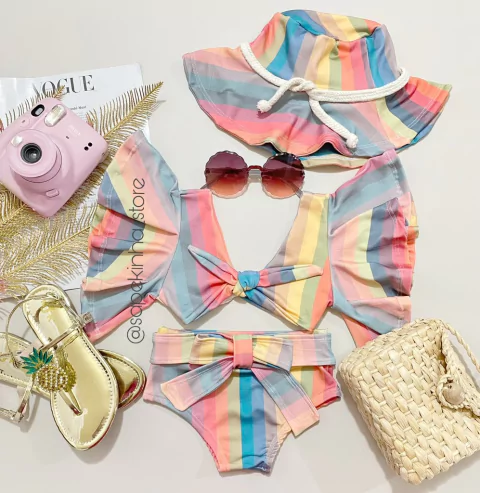 Conjunto biquíni e chapéu