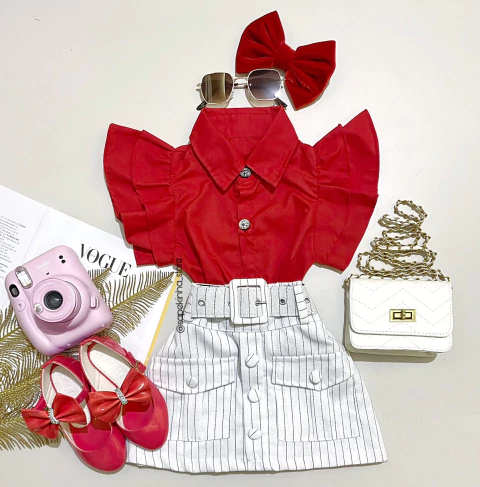 Composto pós short saia com cinto e blusa social. Envio em até 3 dias úteis após a confirmação. Compras feitas em boleto tem prazo de 24h para pagamento, caso o pagamento não seja efetuado nesse prazo, a compra será cancelada automaticamente. Para confirmação dentro desse prazo, mande o recibo do pagamento do boleto para WhatsApp da loja (77) 99940-7020.